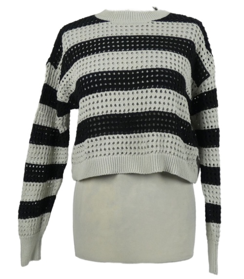 Dámský šedo-černý pruhovaný ažurový crop svetr Kiabi vel. 32
