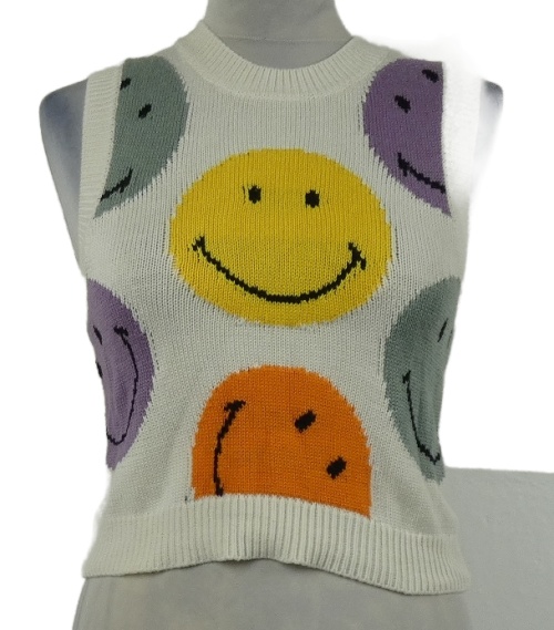 Dámská bílá svetrová crop vesta se smajlíky H&M