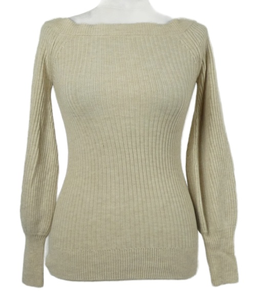 • Dámský béžový žebrovaný svetr s lodičkovým výstřihem Topshop