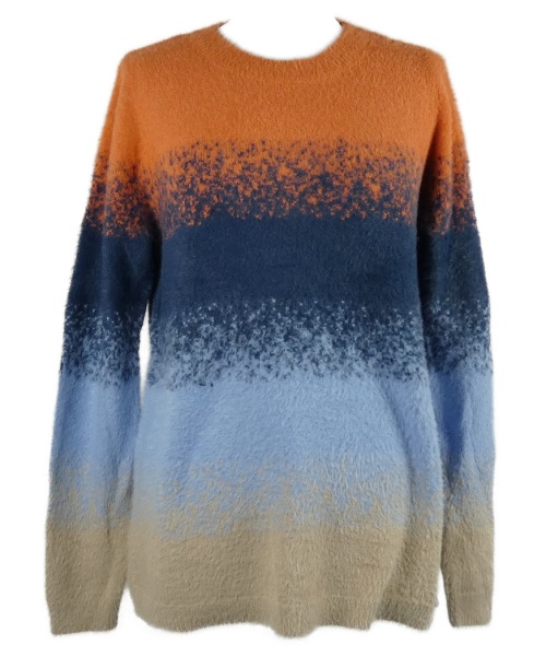 • Dámský modro-béžovo-oranžový vzorovaný chlupatý svetr Multiblu