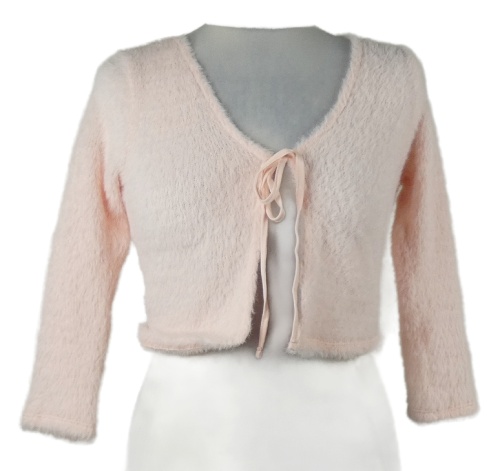 • Dámské světlerůžové svetrové chlupaté bolerko na zavazování Topshop