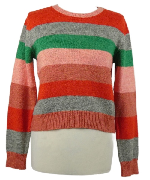 Dámský červeno-zeleno-šedý pruhovaný crop svetr Primark