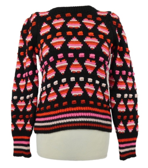Nové - Dámský černo-růžovo-červený srdíčkovaný svetr Savida
