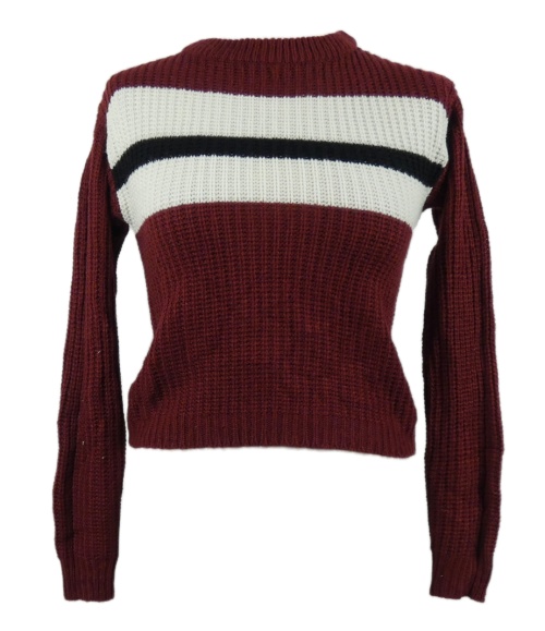 Dámský vínovo-bílý pruhovaný crop svetr Terranova