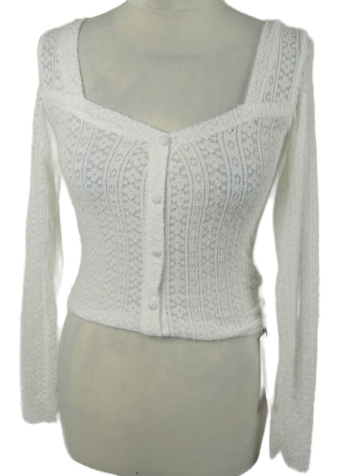 Nové - Dámský bílý vzorovaný crop propínací lehký svetr Dazy