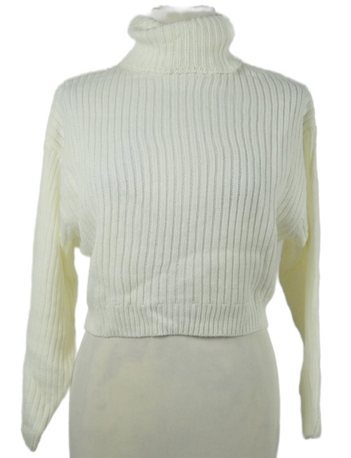 Dámský smetanový žebrovaný crop svetr s rolákem Shein