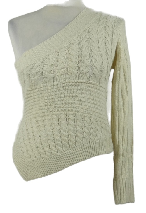 Dámský smetanový vzorovaný asymetrický svetr přes jedno rameno