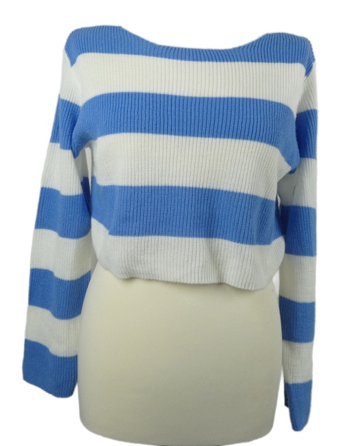 Dámský modro-bílý pruhovaný crop svetr H&M