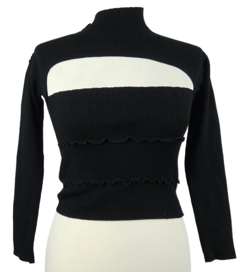 • Dámský černý žebrovaný crop svetr s průstřihem a stojáčkem Shein