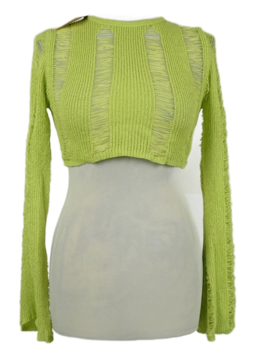 Nové - Dámský limetkový crop svetr s průstřihy Shein