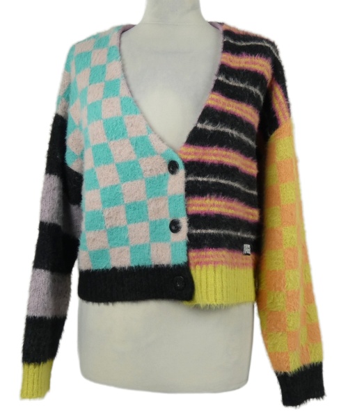 Dámský barevně vzorovaný propínací oversized crop svetr Ragged