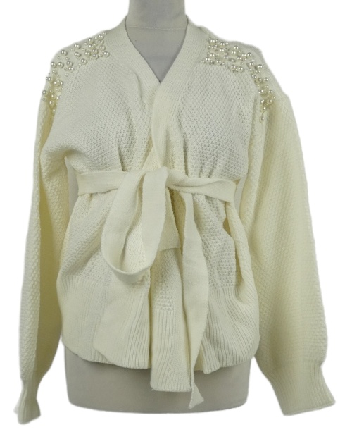 Dámský smetanový svetrový cardigán s korálky a páskem Shein