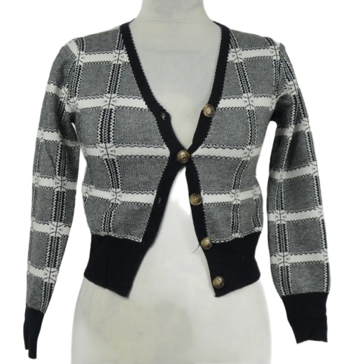 Dámský černo-bílý kostkovaný propínací crop svetr Shein