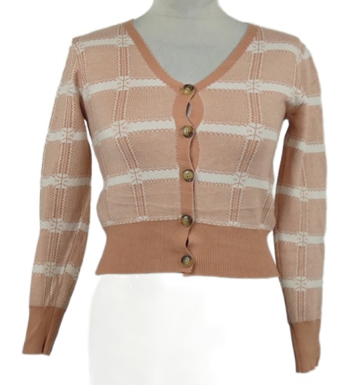 Dámský růžovo-bílý kostkovaný crop svetr Shein