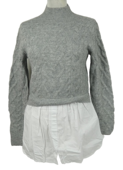 Dámský šedý svetr s bílou halenkovou vsadkou New Look