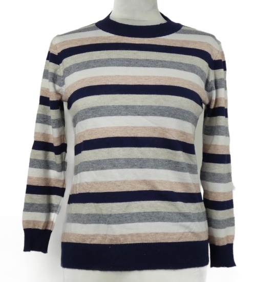 Dámský tmavomodro-světlerůžovo-šedý pruhovaný svetr