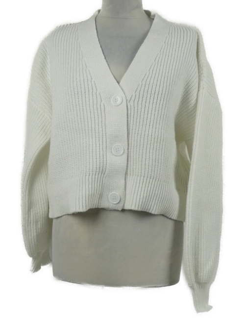 Dámský bílý žebrovaný propínací crop oversized svetr Shein