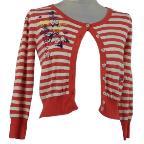 • Dámský růžovo-bílý pruhovaný propínací svetr s výšivkou Miss Selfridge