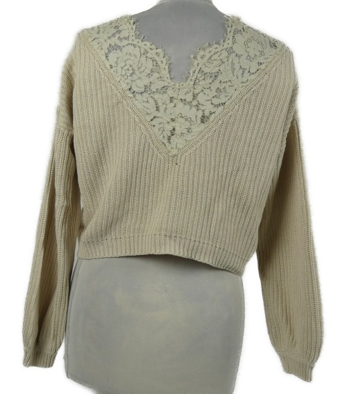 Dámský béžový crop svetr s krajkou Only