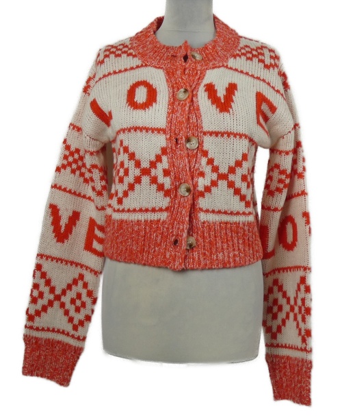 • Dámský červeno-bílý vzorovaný propínací crop svetr In the Style