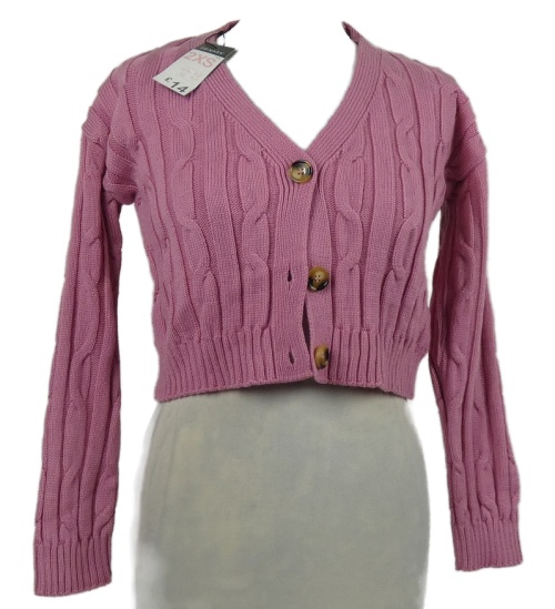 Nové - Dámský růžový vzorovaný crop propínací svetr Primark