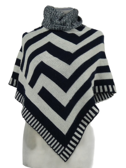 Dámské bílo-tmavomodré pruhované svetrové pončo s rolákem
