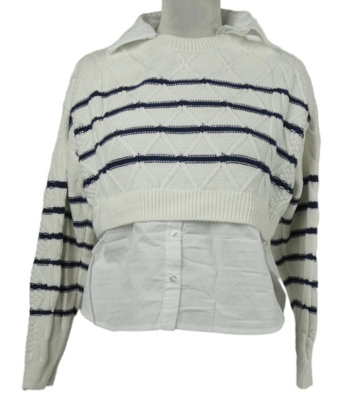 • Dámský bílo-tmavomodrý pruhovaný crop svetr s halenkovou vsadkou Primark