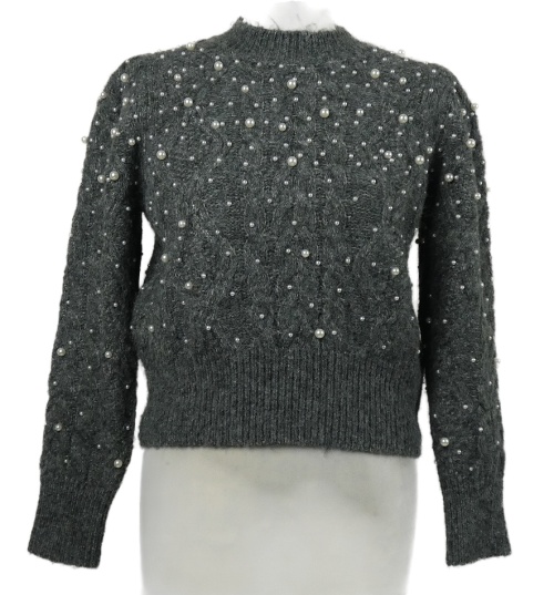 Dámský šedý crop svetr s perličkami Zara