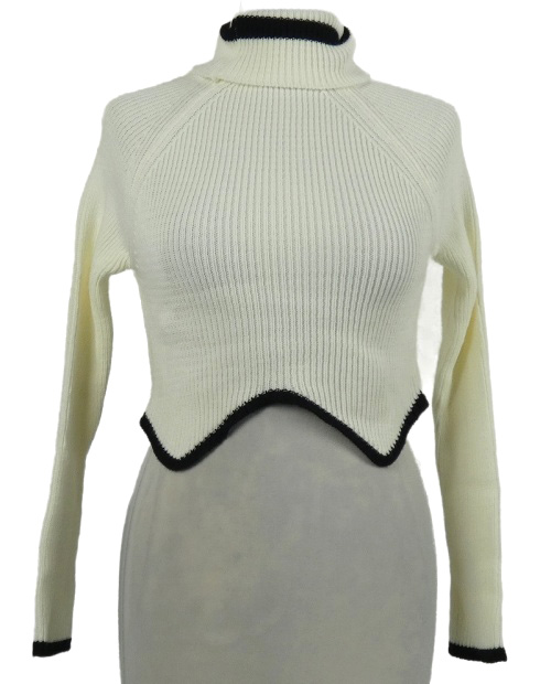 Dámský smetanový žebrovaný crop svetr s černým lemem a rolákem Atmosphere