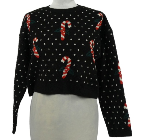 Dámský černý puntíkovaný crop svetr s lízátky