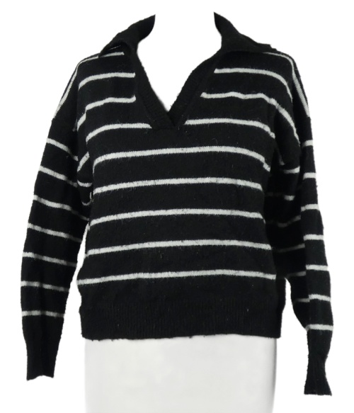 Dámský černo-bílý pruhovaný vlněný svetr s límečkem Shein