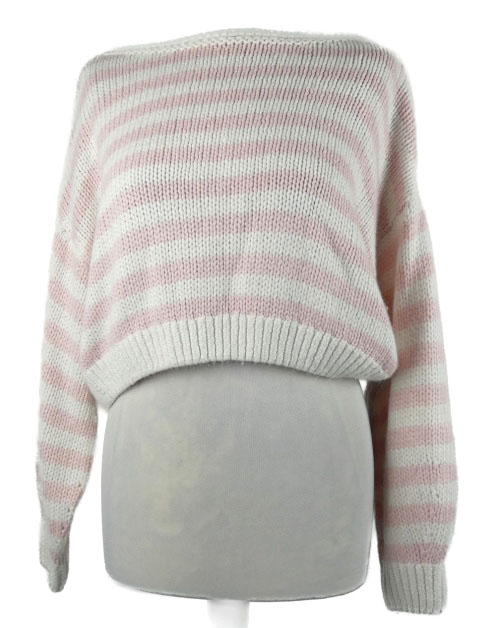 Dámský růžovo-bílý pruhovaný crop svetr Hollister