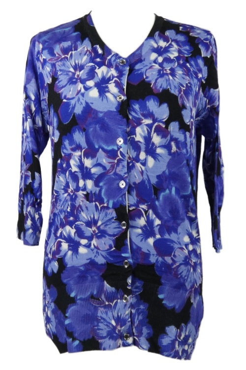 Dámský fialovo-černý květovaný propínací lehký svetr