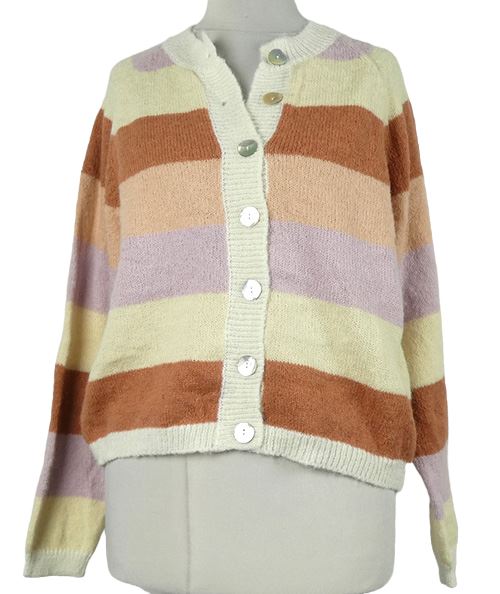 Dámský barevně pruhovaný propínací crop svetr Pieces