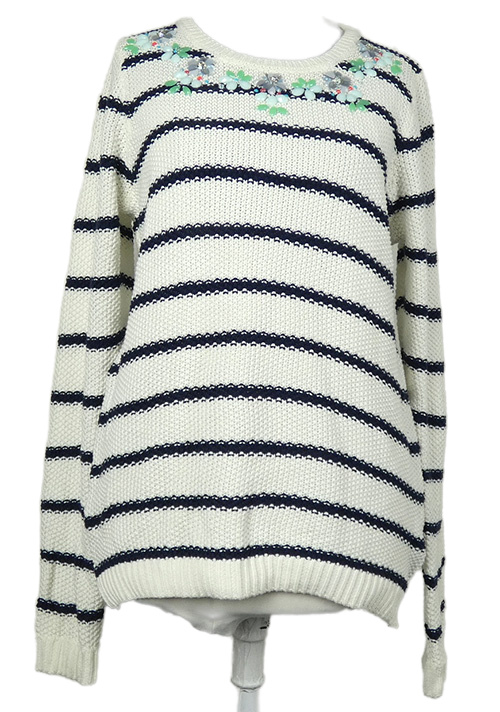 Dámský bílo-tmavomodrý pruhovaný svetr s kamínky F&F