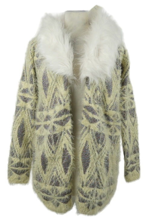 Nové - Dámský béžovo-barevný vzorovaný svetrový cardigán s kožíškem River Island