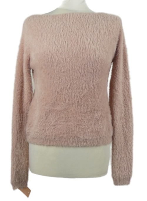 Nové - Dámský světlerůžový chlupatý crop svetr