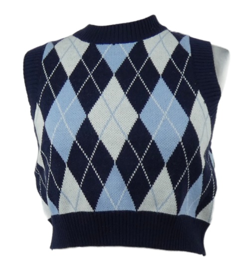 Dámská tmavomodro-světlemodrá károvaná svetrová crop vesta H&M