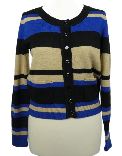 Dámský modro-černo-béžový pruhovaný propínací crop svetr M&S