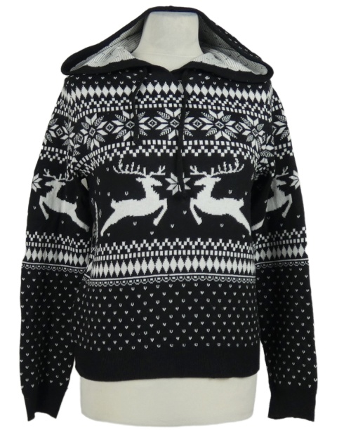 Dámský černo-bílý vzorovaný svetr s jeleny a kapucí Primark