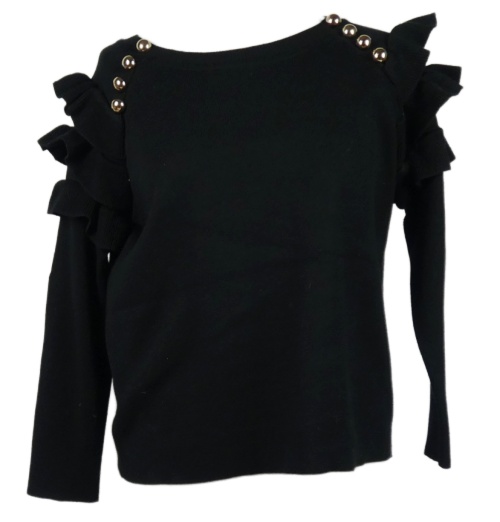 Dámský černý svetr s volánky s gombíky