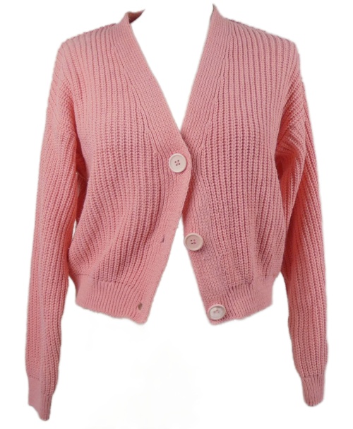 Dámský světlerůžový crop propínací svetr Bianco Lucci