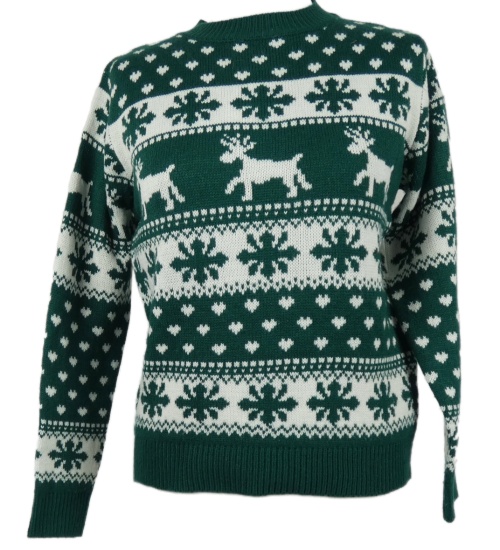 • Dámský tmavozeleno-bílý vzorovaný svetr se zimním motivem Boohoo