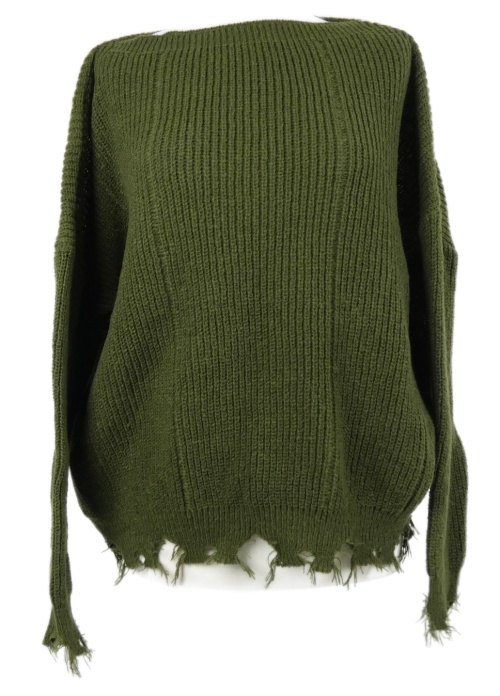 Dámský khaki svetr s roztřepeným lemem Emery Rose
