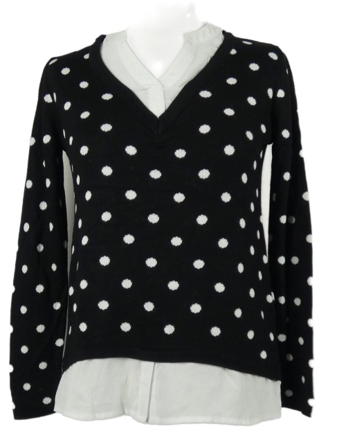 • Dámský černo-bílý puntíkovaný svetr s bílou halenkovou vsadkou Vivance