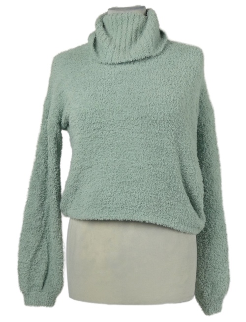 Dámský světlemodrý chlupatý svetrový crop rolák