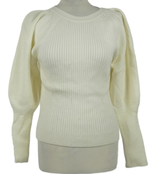 Dámský smetanový žebrovaný svetr s nabíranými rukávy