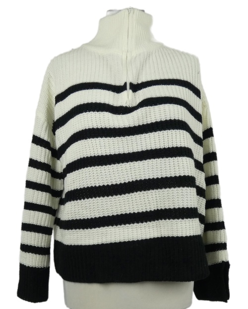 Dámský bílo-černý pruhovaný svetr se stojáčkem Shein