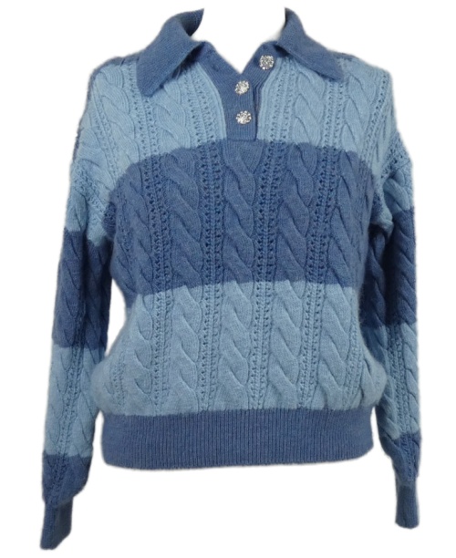 Dámský světlemodro-modrý vzorovaný svetr s límečkem Next