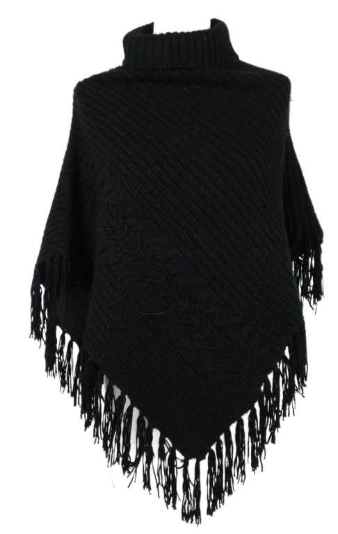 Dámské černé svetrové pončo s třásněmi a rolákem Debbie Morgan